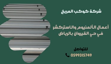 تعتبر شركة حديد والمنيوم ومظلات الرياض من الشركات الرائدة في مجال أعمال الألمنيوم والاستركشر في حي القيروان بالرياض. تقدم الشركة مجموعة متنوعة من الخدمات التي تشمل تصميم وتنفيذ وتركيب أعمال الألمنيوم عالية الجودة، بالإضافة إلى الاستركشر المتقدم الذي يلبي احتياجات العملاء المختلفة. يلتزم فريق العمل المحترف بتقديم أفضل الحلول الهندسية بواسطة استخدام أحدث التقنيات والمواد ذات الكفاءة العالية. من خلال تقديم خدمات موثوقة وسريعة، تسعى شركة حديد والمنيوم ومظلات الرياض إلى تحقيق رضا العملاء وتلبية توقعاتهم. إذا كنت تبحث عن خدمات متميزة في مجال الألمنيوم والاستركشر، فلا تتردد في الاتصال بنا على الرقم 0599315749 للحصول على استشارة مجانية وعرض أسعار يناسب احتياجاتك.