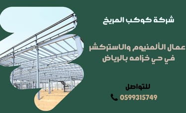 إذا كنت تبحث عن أعمال الألمنيوم والاستركشر عالية الجودة في حي خزامه بالرياض، لا تتردد في التواصل مع شركة حديد والمنيوم ومظلات الرياض.