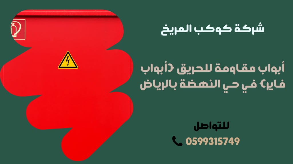 هل تبحث عن أبواب مقاومة للحريق عالية الجودة في حي النهضة بالرياض؟ شركة حديد والمنيوم ومظلات الرياض تقدم لك أفضل أنواع أبواب الفاير المصممة وفق المواصفات العالمية، لضمان الحماية القصوى من الحرائق والحد من انتشار الدخان والغازات السامة.