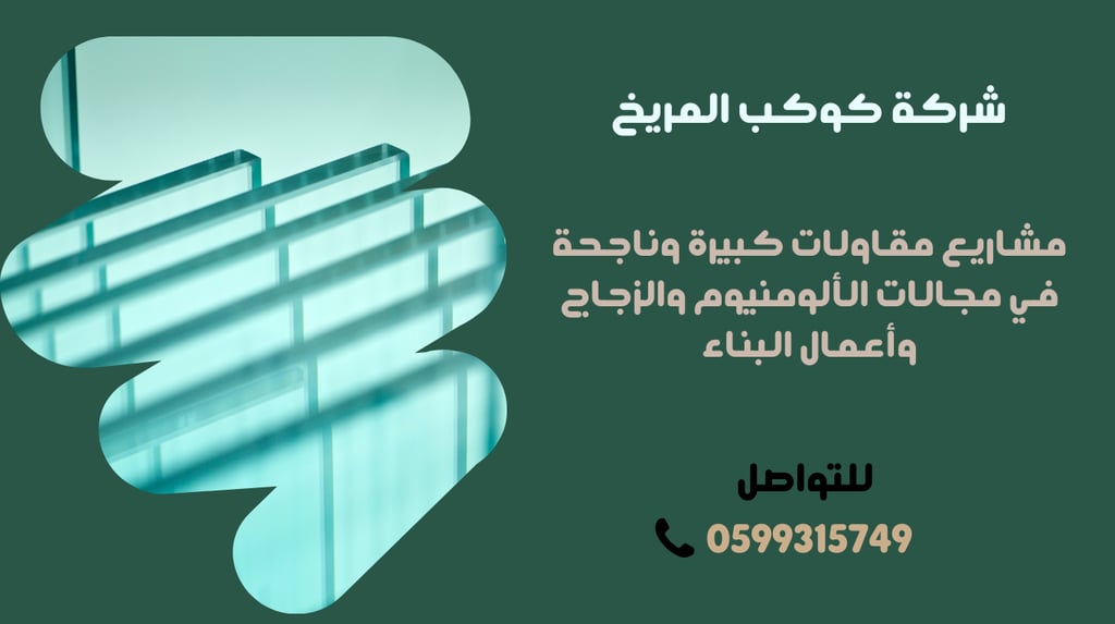 إذا كنت تخطط لتنفيذ مشروع كبير يتطلب حلولًا متكاملة في مجالات الألومنيوم، الزجاج، وأعمال البناء، لا تتردد في التواصل مع شركة كوكب المريخ للمقاولات. يمكنك الاتصال على الرقم 0599315749 للحصول على استشارة مجانية من فريقنا المتخصص، الذي سيساعدك في تنفيذ مشروعك بأعلى مستوى من الجودة والكفاءة.