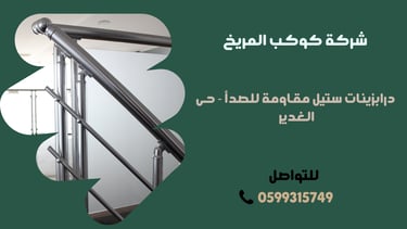 يمكنك الاتصال بـ شركة حديد والمنيوم ومظلات الرياض عبر الهاتف على 0599315749 للحصول على استشارة مجانية حول تركيب درابزينات الستيل المقاوم للصدأ.