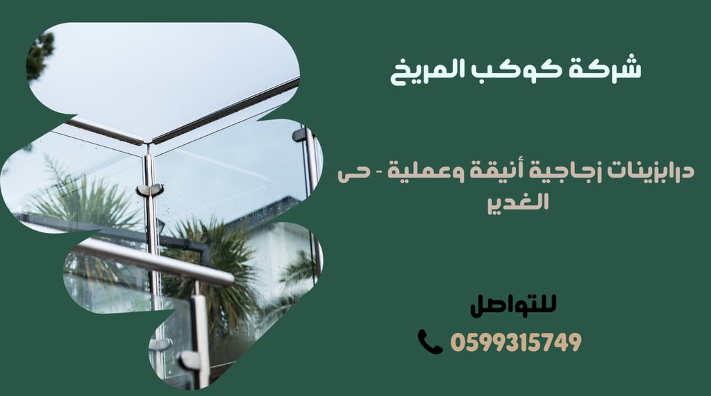 إذا كنت تبحث عن دربزينات زجاجية أنيقة وعملية في الرياض - حي الغدير، فإن شركة حديد والمنيوم ومظلات الرياض هي الخيار المثالي لك. نحن نعمل على توفير حلول متكاملة من خلال تصاميم مخصصة وجودة عالية. اتصل بنا الآن على 0599315749 للحصول على استشارة مجانية أو لمعرفة المزيد عن خدمات تركيب الدربزينات الزجاجية في الرياض.