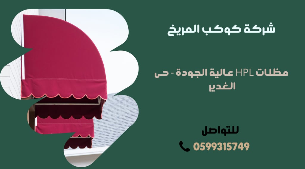 شركة حديد والمنيوم ومظلات الرياض، الواقعة في حي الغدير بالرياض، تُعد من الشركات الرائدة في مجال تقديم خدمات البناء والتشييد. تُخصص الشركة جهودها لتوفير مظلات HPL عالية الجودة، والتي تتميز بالتحمل والمتانة. إن المظلات التي تقدمها الشركة مناسبة للعديد من الاستخدامات، سواء في المنازل أو المنشآت التجارية، مما يوفر الحماية اللازمة من العوامل الجوية. تسعى شركة حديد والمنيوم ومظلات الرياض إلى تلبية احتياجات عملائها من خلال تقديم أفضل الحلول بأعلى معايير الجودة، وتهدف إلى تحقيق رضا العملاء في كل مشروع تنفذه. لمعرفة المزيد عن خدمات الشركة أو للحصول على استشارة، يمكن التواصل عبر الرقم 0599315749.