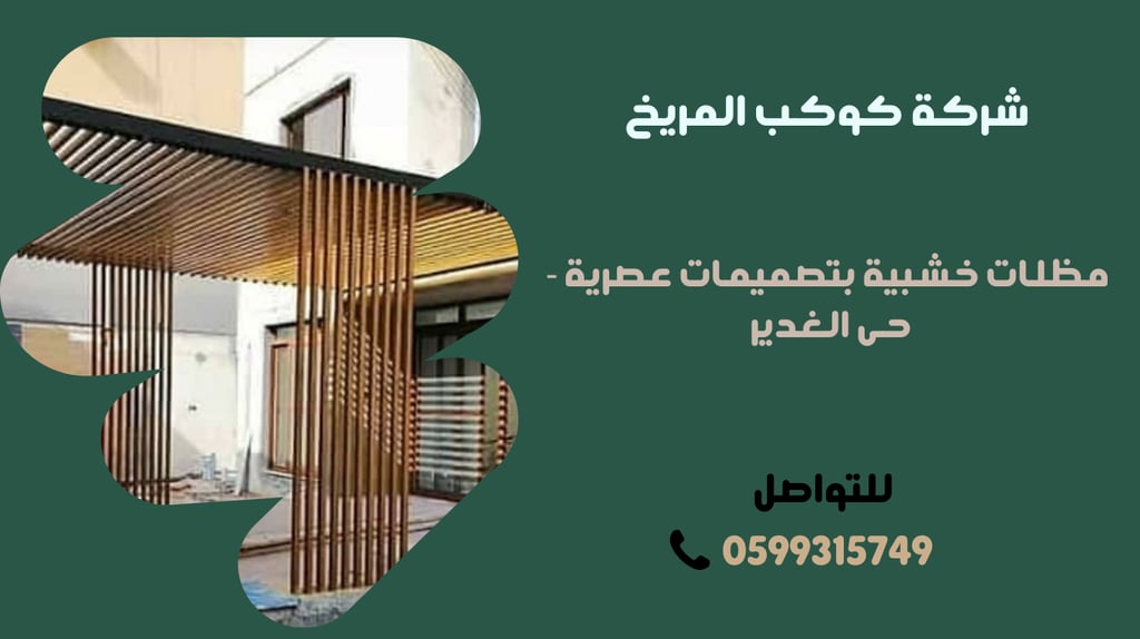 شركة حديد والمنيوم ومظلات الرياض، الواقعة في حي الغدير بالرياض، تعد من الشركات الرائدة في تصميم وتنفيذ المظلات الخشبية بأحدث التصاميم العصرية. تقدم الشركة حلولاً مبتكرة لتلبية احتياجات عملائها وتوفير مساحات خارجية جذابة ومريحة. بفضل جودة المواد المستخدمة والاهتمام بالتفاصيل، فإن مظلات شركة حديد والمنيوم ومظلات الرياض تضمن حماية فعالة من أشعة الشمس والمطر، مما يجعلها الخيار الأمثل للمنازل والمرافق العامة. يمكنكم التواصل مع فريق العمل عبر الرقم 0599315749 للحصول على استشارة مجانية وعرض أسعار مخصص يلبي متطلباتكم. بفضل خبرتها واحترافيتها، تحرص الشركة على إرضاء العملاء وتقديم أفضل الخدمات في مجال المقاولات.