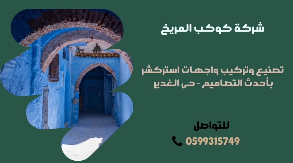 تُعتبر شركة حديد والمنيوم ومظلات الرياض من الشركات الرائدة في مجال البناء والتشييد في الرياض، حيث تقع في حي الغدير. تختص الشركة بتصنيع وتركيب واجهات استركشر بأحدث التصاميم المعمارية، مما يساهم في تقديم حلول مبتكرة وجذابة تلبي احتياجات عملائها. تضمن الشركة جودة عالية في المنتجات والخدمات المقدمة، بفضل استخدام تقنيات حديثة وفريق عمل محترف ذي خبرة. كما يمكن للعملاء التواصل مع الشركة بسهولة عبر الرقم 0599315749 للاستفسارات أو طلب الخدمات. تسعى شركة حديد والمنيوم ومظلات الرياض دائمًا إلى تحقيق رضا العملاء من خلال الالتزام بالمواعيد الدقيقة والتفاصيل الدقيقة، مما يجعلها الخيار المثالي لمشاريع البناء المختلفة.