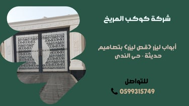 شركة حديد والمنيوم ومظلات الرياض هي واحدة من الشركات الرائدة في مجال المقاولات في الرياض - حي الندى، حيث تقدم حلولًا مبتكرة وعصرية في مجال تصميم وتركيب الأبواب بمختلف أنواعها. واحدة من أبرز خدماتها هي أبواب الليزر (قص ليزر) التي تتميز بتصاميم حديثة وأنيقة، وتعتبر خيارًا مثاليًا للأفراد والشركات التي تبحث عن لمسة من التميز والجمال في تفاصيل أبوابها.