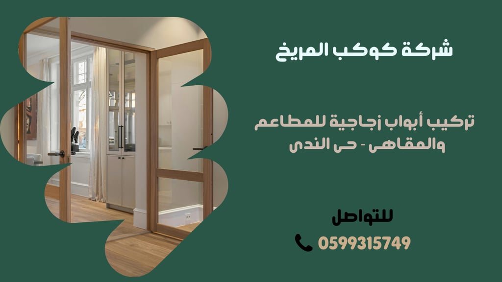شركة حديد والمنيوم ومظلات الرياض تقدم خدمات تركيب الأبواب الزجاجية للمطاعم والمقاهي بأعلى معايير الجودة والاحترافية. إليك أبرز ما تقدمه الشركة في هذا المجال: