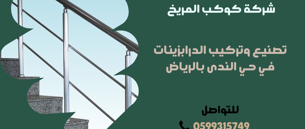 تعتبر شركة حديد والمنيوم ومظلات الرياض واحدة من الشركات الرائدة في مجال تصنيع وتركيب الدرابزينات في الرياض، حيث تقع في حي الندى. تقدم الشركة مجموعة متنوعة من التصاميم والأشكال التي تلبي احتياجات مختلف العملاء، سواء كانت للمشاريع السكنية أو التجارية. يتميز فريق العمل بالاحترافية والمهارة العالية، مما يضمن جودة المنتجات وسرعة التوصيل والتركيب. كما تسعى الشركة دائماً لتقديم أفضل الحلول لتأكد من رضا العملاء التام. إذا كنت تبحث عن درابزينات مميزة ومريحة، يمكنك الاتصال بشركة حديد والمنيوم ومظلات الرياض على الرقم 0599315749 للحصول على استشارة مجانية وعرض أسعار.