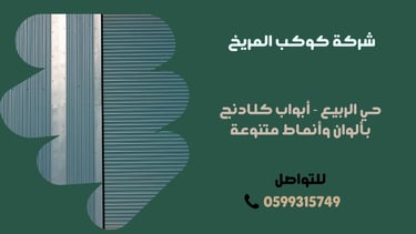 في عالم التصميم العصري، أصبحت أبواب الكلادنج خيارًا مثاليًا لكل من يبحث عن الأناقة والعملية في آنٍ واحد. شركة حديد والمنيوم ومظلات الرياض - حي الربيع توفر لك أفضل الحلول في تصنيع وتركيب أبواب الكلادنج بمواصفات عالمية وتصاميم حديثة تناسب جميع الاحتياجات.
