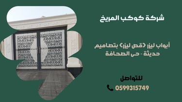 إذا كنت ترغب في إضافة لمسة عصرية وجمالية إلى مشروعك في الرياض، لا تتردد في اختيار أبواب ليزر (قص ليزر) من شركة كوكب المريخ للمقاولات. نحن نقدم لك أفضل الحلول لتصميم وتركيب أبواب ليزر بتصاميم مبتكرة وجودة عالية. اتصل بنا اليوم على 0599315749 للحصول على استشارة مجانية أو طلب عرض سعر مخصص.
