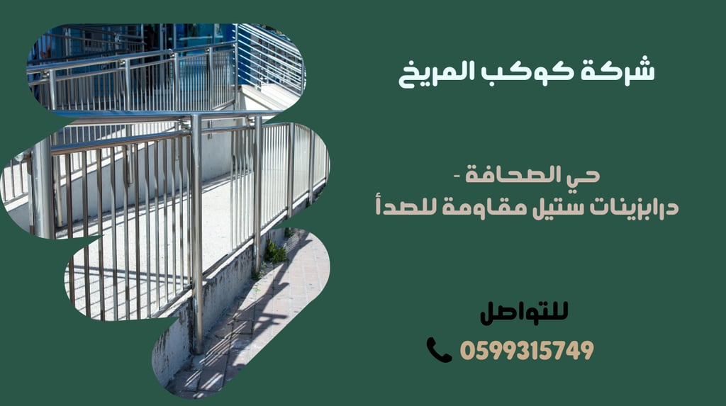 تعتبر شركة حديد والمنيوم ومظلات الرياض واحدة من الشركات الرائدة في مجال المقاولات في الرياض، وتحديداً في حي الصحافة. تتميز الشركة بتقديمها لمجموعة متميزة من خدمات المقاولات، ومنها تصميم وتركيب درابزينات ستيل مقاومة للصدأ، التي تجمع بين الجمال والمتانة. هذه الدربزينات لا تعد فقط وسيلة للسلامة، بل تضيف لمسة جمالية للمساحات الداخلية والخارجية. مع الالتزام بأعلى معايير الجودة وخدمة العملاء، فإن شركة حديد والمنيوم ومظلات الرياض تسعى لتلبية احتياجات عملائها وتحقيق رضاهم. يمكنكم التواصل مع الشركة عبر الهاتف على رقم 0599315749 لمزيد من المعلومات أو للاستفسارات.