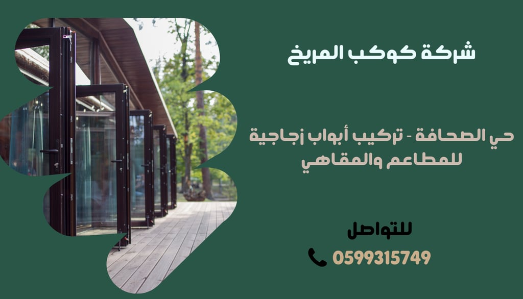 إذا كنت تبحث عن أبواب زجاجية أنيقة وعصرية لمطعمك أو مقهاك، فإن شركة حديد والمنيوم ومظلات الرياض، حي الصحافة توفر لك أفضل أنواع الأبواب الزجاجية المصنوعة بأعلى معايير الجودة والتصميم الحديث.