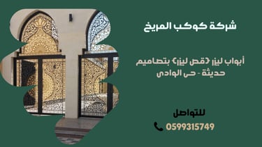 إذا كنت تبحث عن أبواب ليزر بتصاميم حديثة وتقنيات متطورة في الرياض، يمكنك الاتصال بشركة حديد والمنيوم ومظلات الرياض على الرقم 0599315749 للحصول على استشارة مجانية أو لترتيب موعد مع فريقهم المتخصص. سيكون لديهم كل ما تحتاجه من حلول مبتكرة تلبي احتياجاتك وتصاميمك الخاصة.