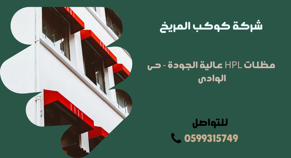 إذا كنت تبحث عن مظلات HPL عالية الجودة في الرياض، فلا تتردد في التواصل مع شركة حديد والمنيوم ومظلات الرياض في حي الوادي. عبر الاتصال على الرقم 0599315749، يمكنك الحصول على استشارة مجانية وتفاصيل حول أنواع المظلات التي تقدمها الشركة وخدماتها.