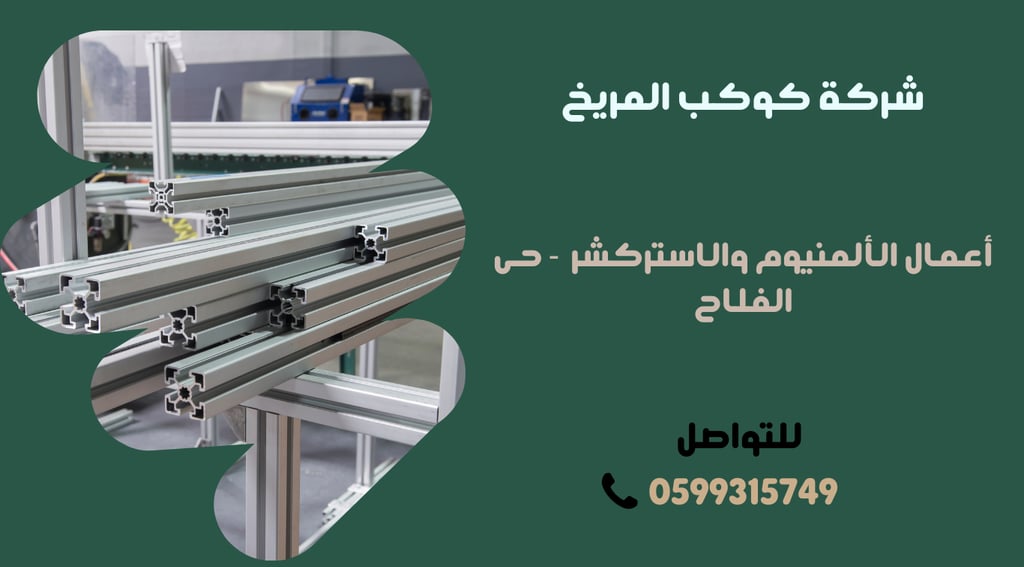 إن شركة كوكب المريخ للمقاولات في الرياض - حي الفلاح، تقدم خدمات متميزة في مجال أعمال الألمنيوم والاستركشر، بفضل اعتمادها على الجودة، الابتكار، والتكنولوجيا الحديثة في جميع مراحل العمل. إذا كنت تبحث عن تصاميم معمارية حديثة تجمع بين الجمالية والكفاءة، فإن شركة كوكب المريخ هي الخيار المثالي لمشاريعك، سواء كانت صغيرة أو ضخمة. يمكنك التواصل مع الشركة عبر الرقم 0599315749 لمزيد من التفاصيل أو للاستفسار عن خدماتها المتنوعة.