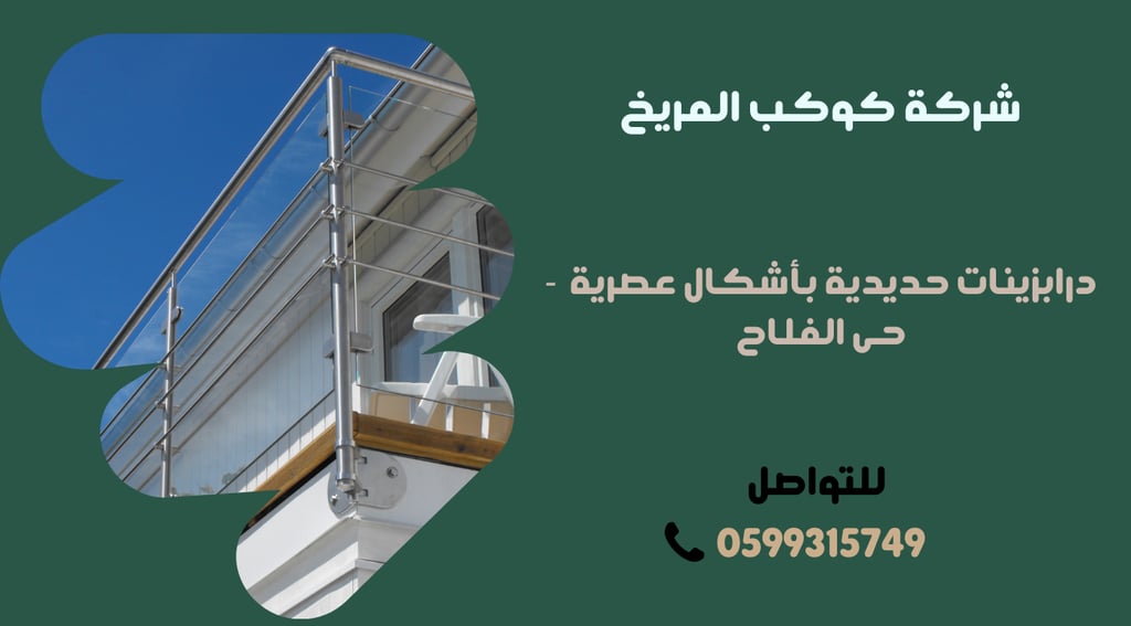 إذا كنت تبحث عن حلول عصرية للدرابزينات الحديدية التي تجمع بين الأناقة والأمان، يمكنك التواصل مع شركة كوكب المريخ للمقاولات في الرياض - حي الفلاح عبر الرقم 0599315749 للحصول على استشارات مجانية أو للاستفسار عن خدماتها المختلفة في مجال تركيب الدرابزينات الحديدية وغيرها من أعمال المقاولات.