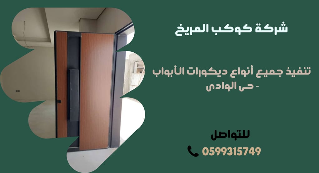 شركة كوكب المريخ للمقاولات في الرياض - حي الوادي تعتبر خيارًا مثاليًا لتنفيذ كافة أنواع ديكورات الأبواب سواء كنت ترغب في إضافة لمسة جمالية إلى منزلك أو مكتبك أو تنفيذ مشروع تجاري أو صناعي، فإن الشركة توفر لك الحلول الأمثل مع التركيز على الجودة، التصميم، والاحترافية. بفضل الخبرة الطويلة، التزامها بالجودة، واستخدام أحدث التقنيات، تظل شركة كوكب المريخ هي الشريك المثالي للمشاريع المختلفة في مجال المقاولات.