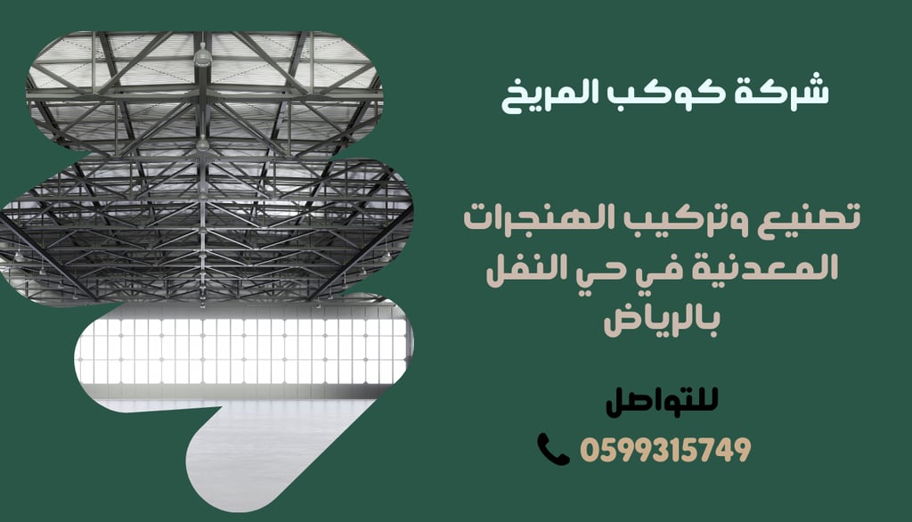 شركة حديد والمنيوم ومظلات الرياض هي الخيار الأمثل لك إذا كنت تبحث عن تصنيع وتركيب الهنجرات المعدنية في حي النفل بالرياض. نتميز بتقديم حلول مبتكرة تلبي جميع احتياجاتك من الهياكل المعدنية المتينة بأعلى جودة وبأسعار تنافسية، كما نقدم خدمات متميزة في التصميم والتنفيذ لتتناسب مع مختلف المشاريع، سواء كانت صناعية أو تجارية أو سكنية.