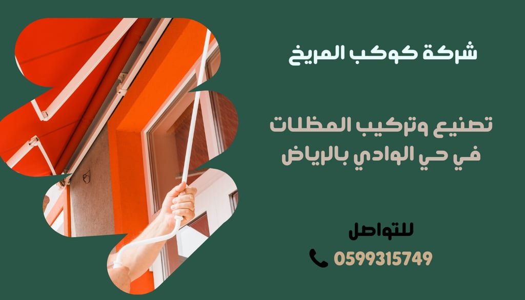لا تتردد في الاتصال بنا على 0599315749 للحصول على أفضل خدمات تركيب المظلات في حي الوادي بالرياض بجودة عالية وأسعار تنافسية!