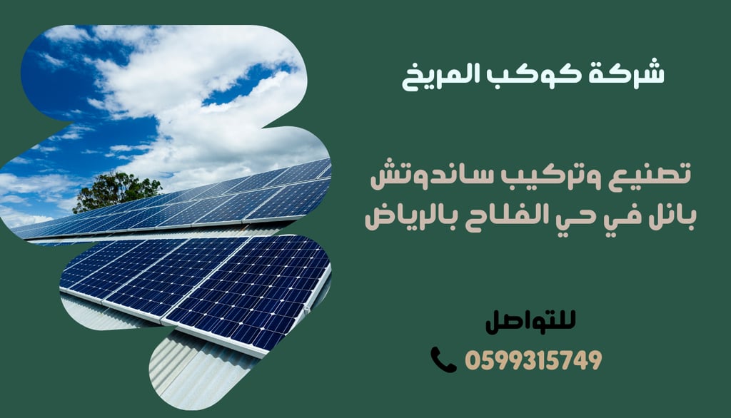 إذا كنت ترغب في تركيب ساندوتش بانل في حي الفلاح بالرياض، فلا تتردد في التواصل مع شركة حديد والمنيوم ومظلات الرياض. نحن نقدم لك أفضل الحلول مع ضمان الجودة والاحترافية في التنفيذ.