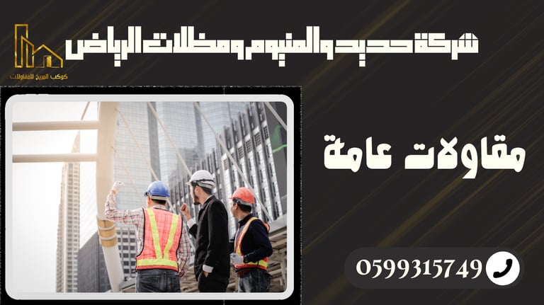 شركة حديد والمنيوم ومظلات الرياض هي شركة متخصصة في أعمال المقاولات العامة بجميع مجالاتها في الرياض، حيث نقدم حلولًا متكاملة تشمل الإنشاءات، التشطيبات، أعمال الحديد، الألمنيوم، الزجاج، الستانلس ستيل وغيرها من الخدمات المتميزة. نعمل وفق أعلى معايير الجودة لضمان تنفيذ مشاريع قوية، آمنة، ومتينة تلبي احتياجات عملائنا بأفضل الأسعار التنافسية.